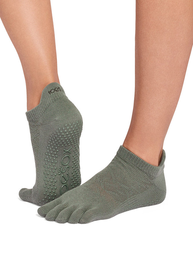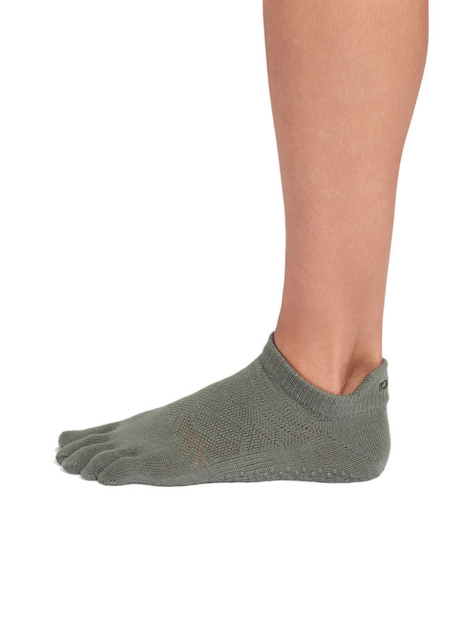 El perfil de tiro bajo envuelve el pie por debajo del tobillo y presenta la suela antideslizante patentada ToeSox para una pisada segura en cualquier superficie.