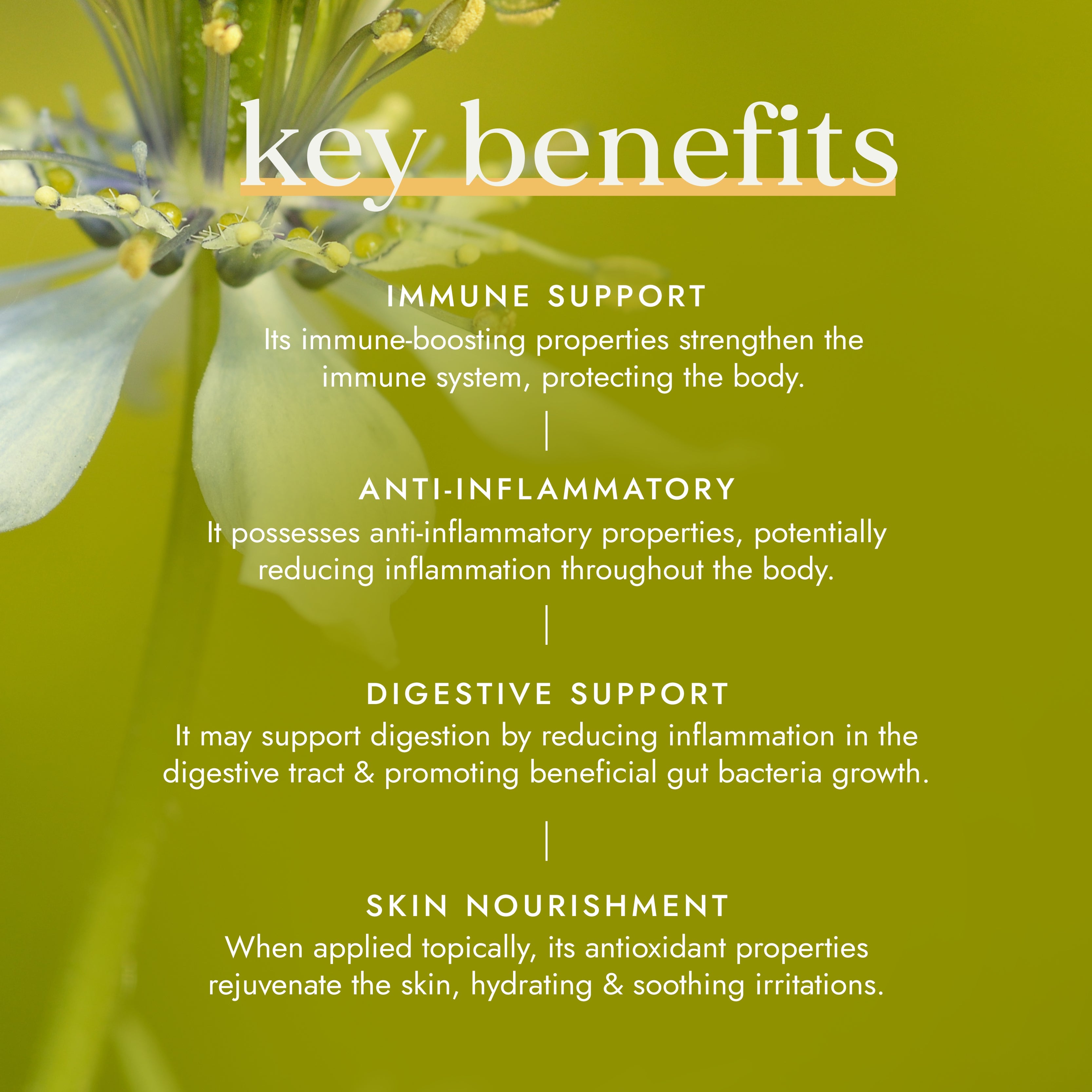 BENEFITS: Taken internally protects body function, applied topically brighten complexion & tackle dry, itchy, and scaly skin conditions.