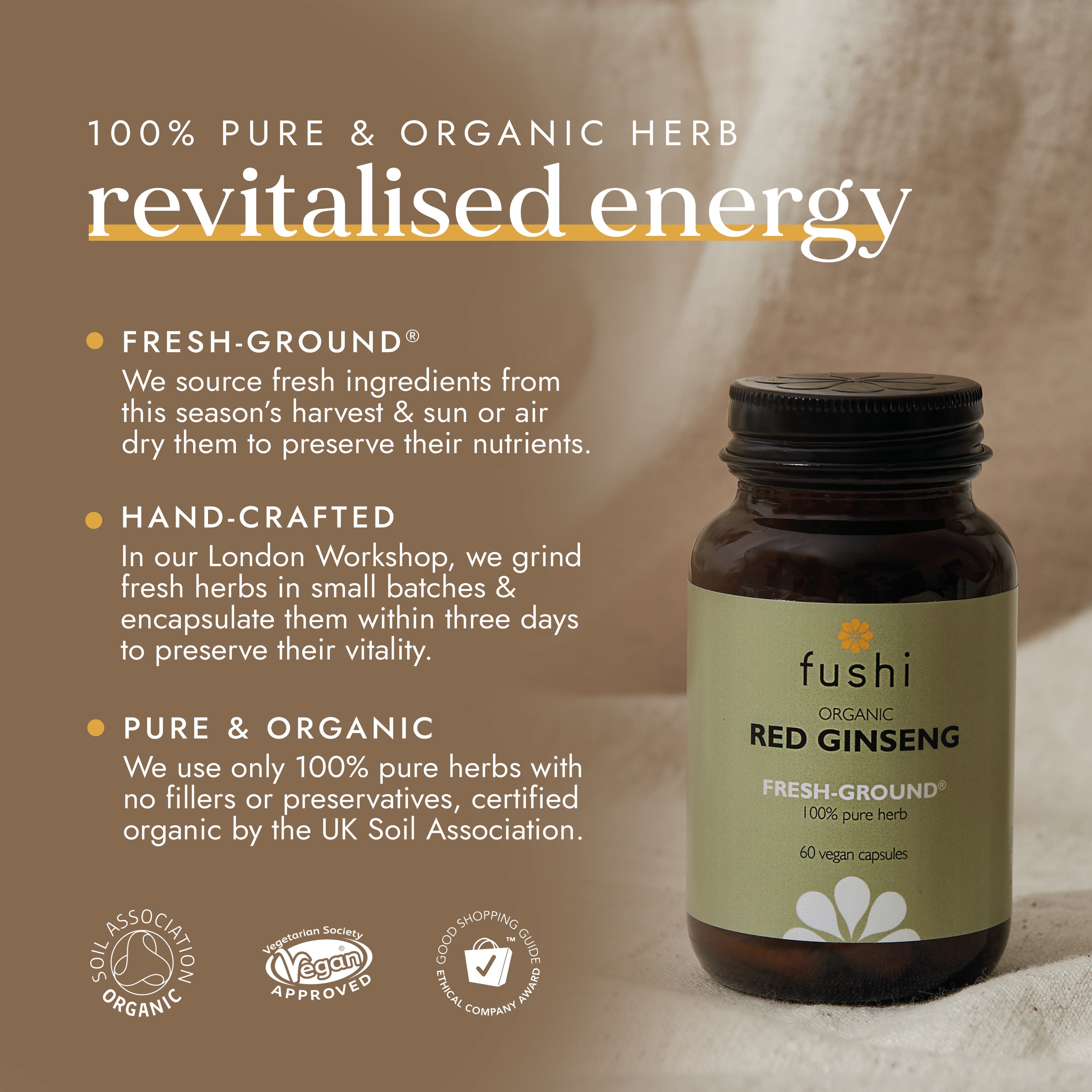 KEY INGREDIENTS:100% pure & organic Fresh-Ground® Red Ginseng