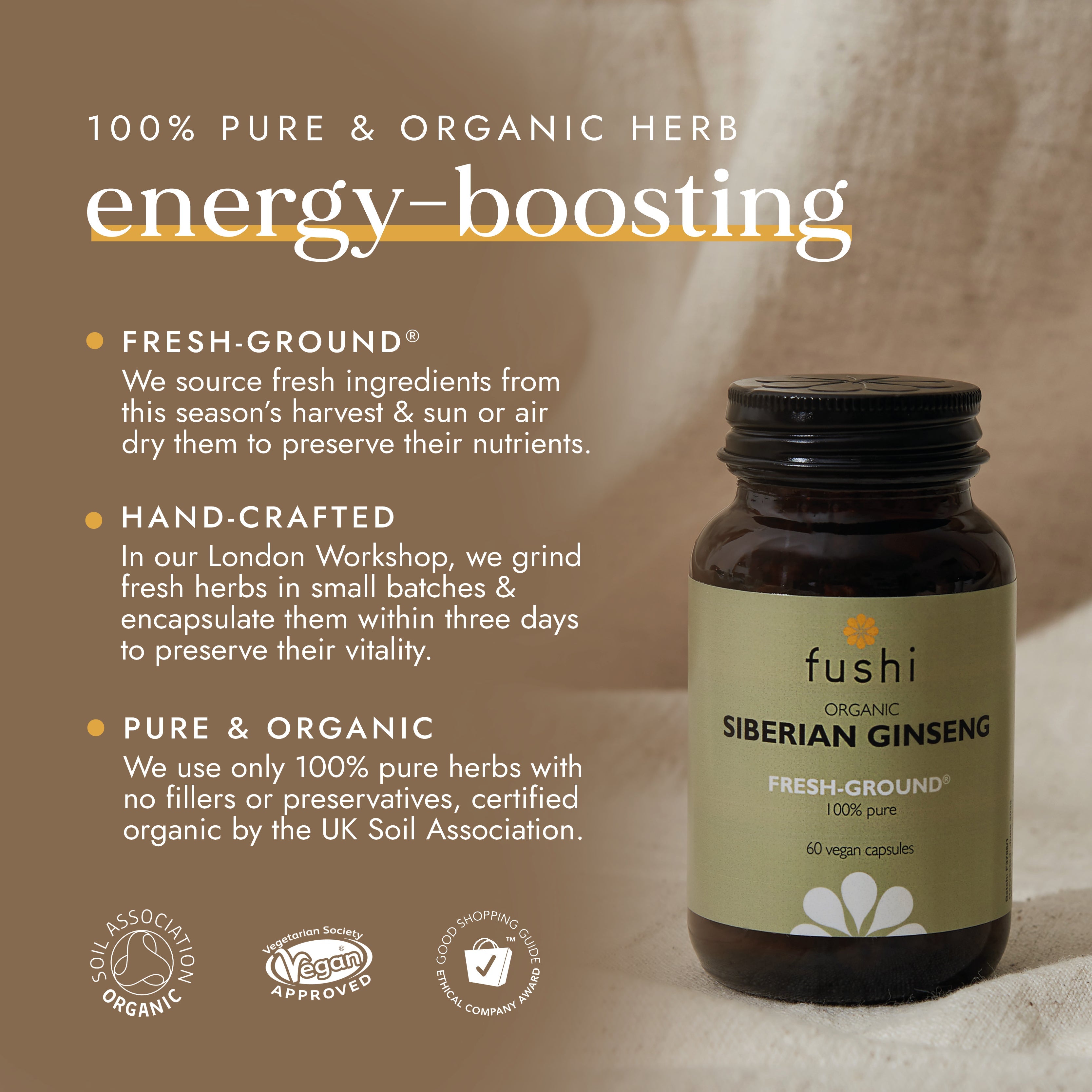 KEY INGREDIENTS: 100% pure & organic Fresh-Ground® Siberian Ginseng