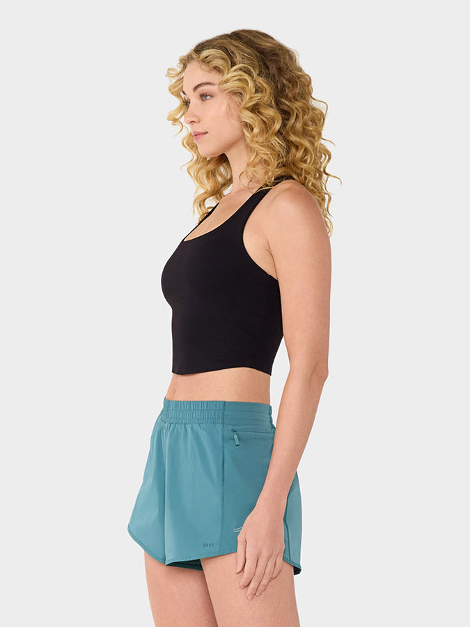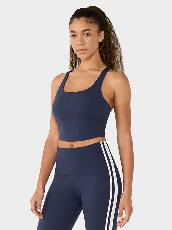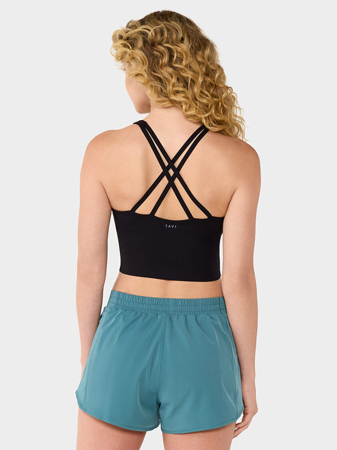 Distinctive criss-cross straps and mid-length coverage for stylish, comfortable support.